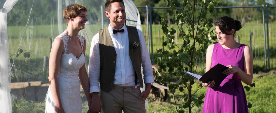 Per Internet sind wir auf Julia gestoßen und schon der erste E-Mail Kontakt war so herzlich und empathisch, dass wir sie sofort kennenlernen wollten. Nach dem ersten Treffen war uns klar, dass wir mit Julia sogar jemanden gefunden haben mit dem wir uns auf eine freie Trauung einlassen konnten. Sie war genau die Richtige für uns! … Die Rede war so schön und passend für uns, dass wir und alle unsere Gäste ganz gerührt waren. Sie hat genau die richtige Art gefunden unsere Geschichte zu erzählten, locker mit Humor und dem richtigen Gespür für die Ernsthaftigkeit… unsere Gäste dachten, sie ist eine lange Freundin von uns. Wir, unsere Familie und alle Freunde waren und sind begeistert.