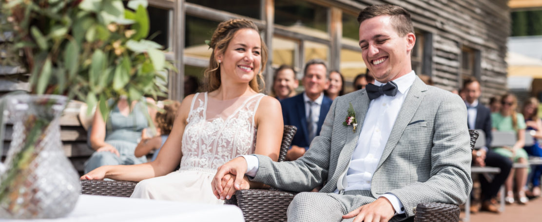 Gleich bei unserem ersten Treffen wussten wir – das passt! Deine offene Art und dein herzliches Lachen hat sofort eine angenehme Atmosphäre geschaffen in der wir voller Freude von uns erzählen konnten. Dass dann ausgerechnet unser Hochzeitstermin auf einen deiner letzten freien Termine fällt muss man dann wohl unter „glückliche Fügung“ abheften. Aber nicht nur bei den Vorbereitungsterminen, sondern natürlich auch bei der Trauung haben wir uns zu jeder Zeit wohl gefühlt. Deine persönliche, mit lustigen Anekdoten gespickte Rede hat nicht nur bei uns sondern auch bei unseren Gästen ein Grinsen und hier und da eine Träne hinterlassen. Vor unserer Hochzeit hatten wir die Floskel „der schönste Tag im Leben“ immer etwas belächelt – im Nachhinein können wir dem ganzen aber zu 100% zustimmen – du hast mit deiner Trauung einen großen Teil dazu beigetragen! VIELEN VIELEN DANK!