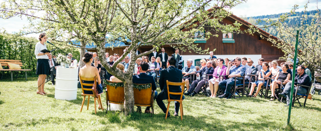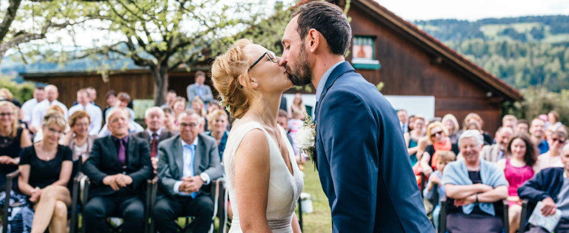 Wir mussten zum Glück nicht lange suchen, bis wir auf deine Seite gestoßen sind und waren uns gleich nach dem ersten Kennenlernen sicher, dass wir unsere freie Trauung mit dir zusammen feiern wollen. Es hat von Anfang an sehr viel Spaß gemacht mit dir zusammen die Feier zu gestalten. Wir wollten etwas ganz Besonderes und haben uns mit unseren Vorstellungen und Wünschen bei dir sehr gut aufgehoben gefühlt. Die Trauung war wunderschön und genau so, wie wir uns das erträumt hatten. Es war emotional aber auch lustig, es war locker aber auch ernst, es war einfach perfekt für uns. Du hast unsere Geschichte mit so viel Gefühl und Liebe zum Detail erzählt, wie wir es selbst nicht besser hätten machen können. Sogar die Sonne hat perfektes Timing bewiesen und hat sich kurz vor Beginn gezeigt. Es hat einfach alles gepasst und wir konnten die Trauung total entspannt erleben. Dafür möchten wir dir, liebe Julia von ganzem Herzen danken. Man merkt, dass es deine Leidenschaft ist zu erzählen und damit andere Menschen glücklich zu machen. Uns hast du sehr glücklich gemacht, vielen lieben Dank dafür. Wir wünschen dir noch ganz viele Paare, die du glücklich machen darfst.